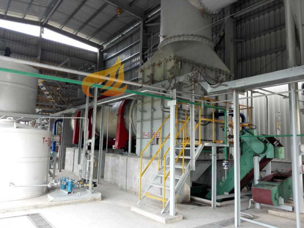 危廢處理系統(tong)由上料(liao)裝(zhuang)置、進料(liao)裝(zhuang)置、回轉窯本體,二次(ci)燃燒室、G-L換熱(re)器(qi)、急(ji)冷塔、布袋(dai)除塵器(qi)、